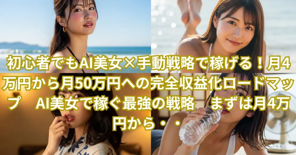 おススメ記事紹介 900円 初心者でもAI美女×手動戦略で稼げる!月4万円から月50万円への完全収益化ロードマップ AI美女で稼ぐ最強の戦略 まずは月4万円から・・