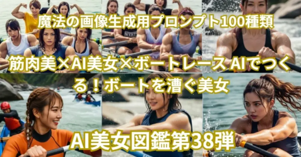 【第38弾】筋肉美×AI美女×ボートレース AIでつくる!ボートを漕ぐ美女プロンプト100種類大公開します 美しさと力強さを同時に描けるテーマ【空想】|お喋りモンスター爆顔 OSHYABAKU