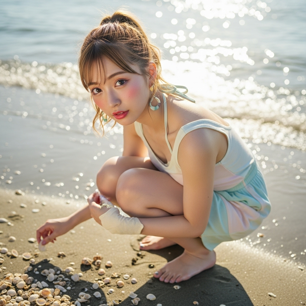 本記事「【画像63枚】健康的な白い肌に、光を受けて柔らかく輝く茶髪、自然でフェミニンなメイクのAI美女の写真集風 夏の浜辺を舞台に・・17種類のプロンプトを公開します」では、夏の海辺を舞台にしたAI美女の実用プロンプト17種+完成イメージ63枚が惜しみなく公開されています。内容、仕様、活用術、そして使った感想まで徹底解説します。